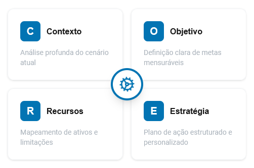 NADA se baseia em achismos. É seguido um framework proprietário de engenharia de negócios que transforma diagnósticos em planos de ação concretos.